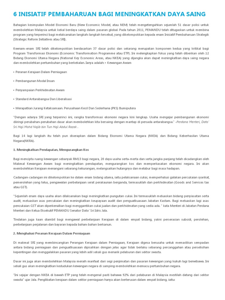 6 Inisiatif Pembaharuan Bagi Meningkatkan Daya Saing Sri Haji Mohd Najib Bin Tun Haji Abdul Razak