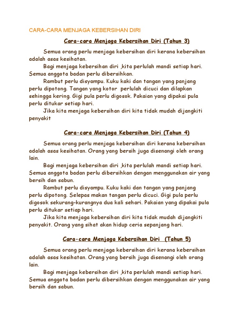 Cara Cara Menjaga Kebersihan Diri Tahun 4