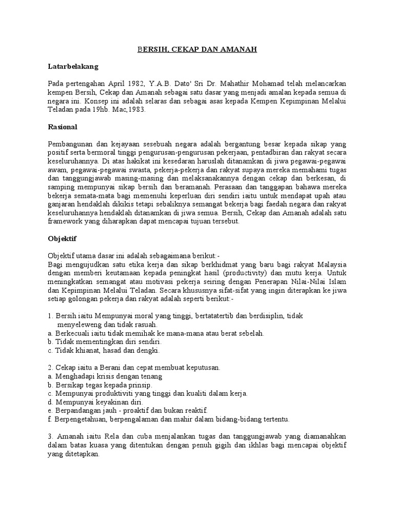 Dasar Bersih Cekap Dan Amanah