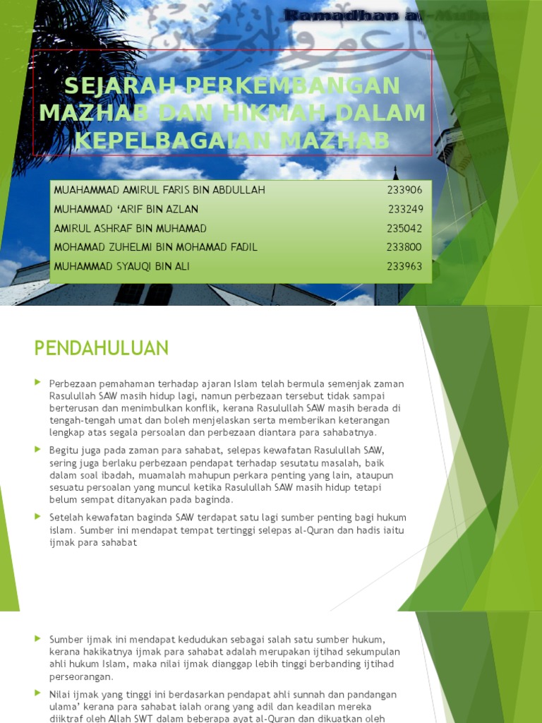 Sejarah Perkembangan Mazhab Dan Hikmah Dalam Kepelbagaian Mazhab