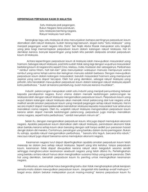 Kepentingan Perpaduan Kaum Di Malaysia Karangan Pt3
