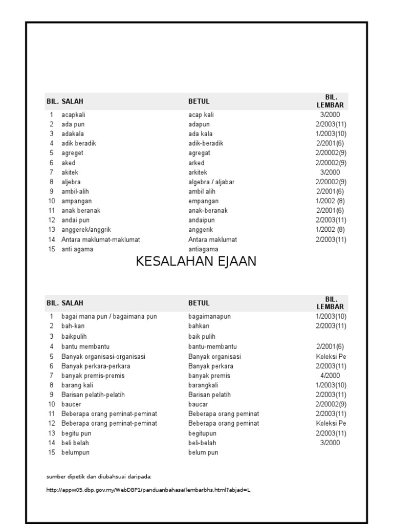 Koleksi Lembar Bahasa Kesalahan Ejaan 2 Pdf Document