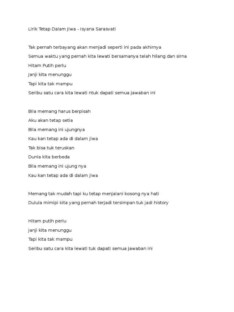 Isyana Sarasvati Tetap Dalam Jiwa Lirik Koleksi Lirik Lagu Melayu Dan Inggeris