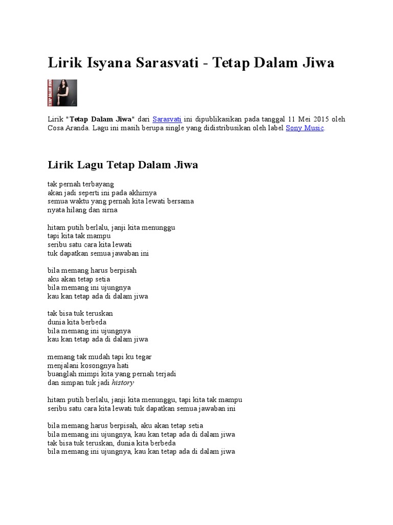 Tetap Dalam Jiwa Isyana Sarasvati Lirik Lagu Lagu Lirik