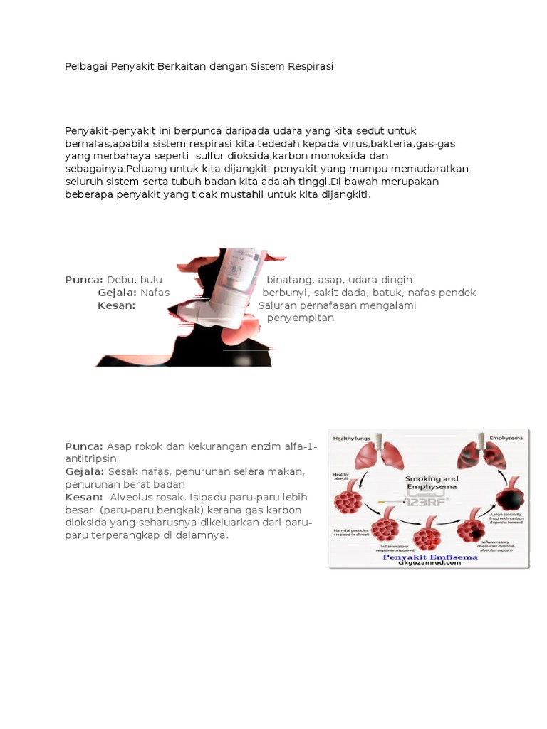 Penyakit sistem respirasi berpunca daripada bahan bahan berbahaya yang kita sedut daripada udara.