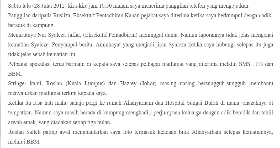 Takziah Pembaca Berita Tv3 Mati Dibunuh Dalam Rumah