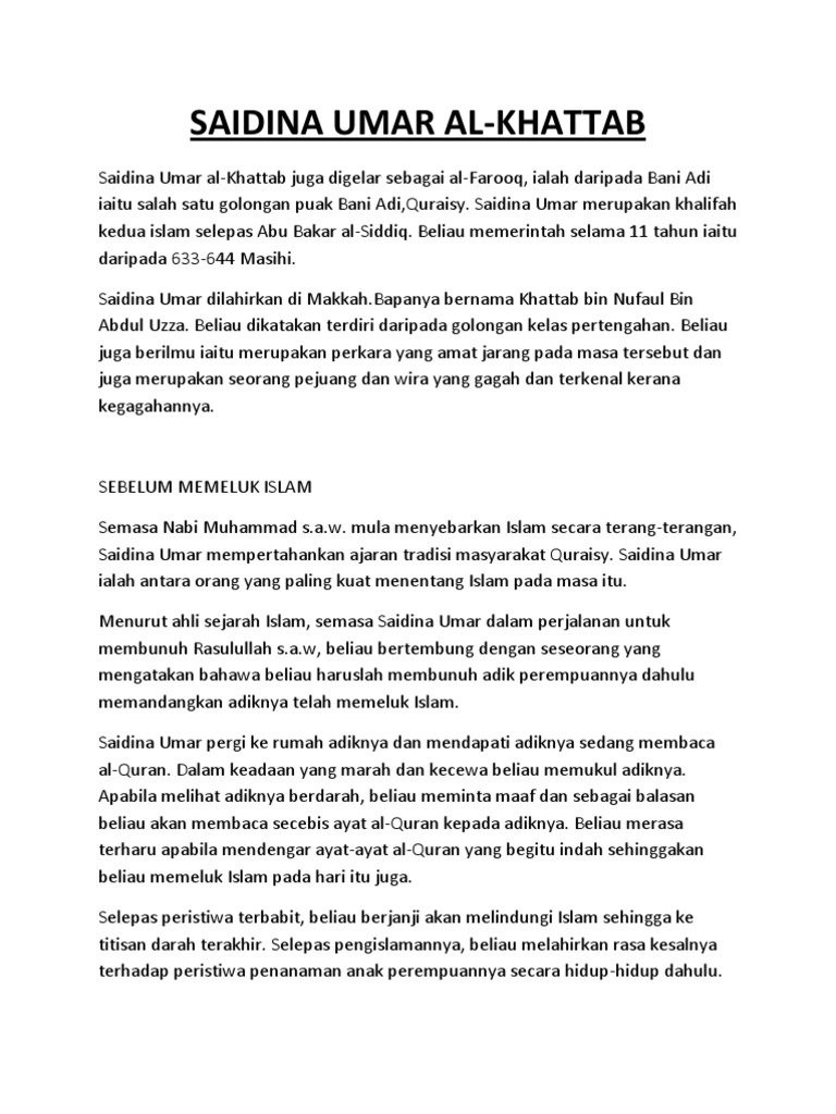 Sejarah Sem 2 Terangkan Latar Belakang Saidina Umar Dan Sumbangannya