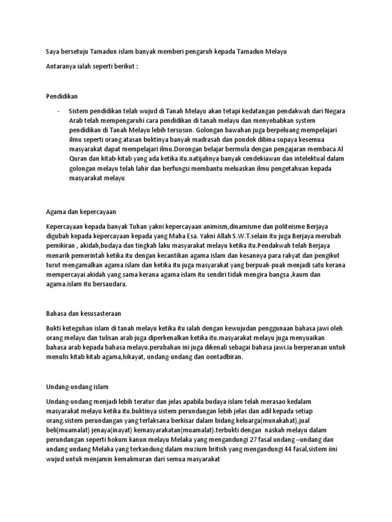 Saya Bersetuju Tamadun Islam Banyak Memberi Pengaruh Kepada Tamadun Melayu 1
