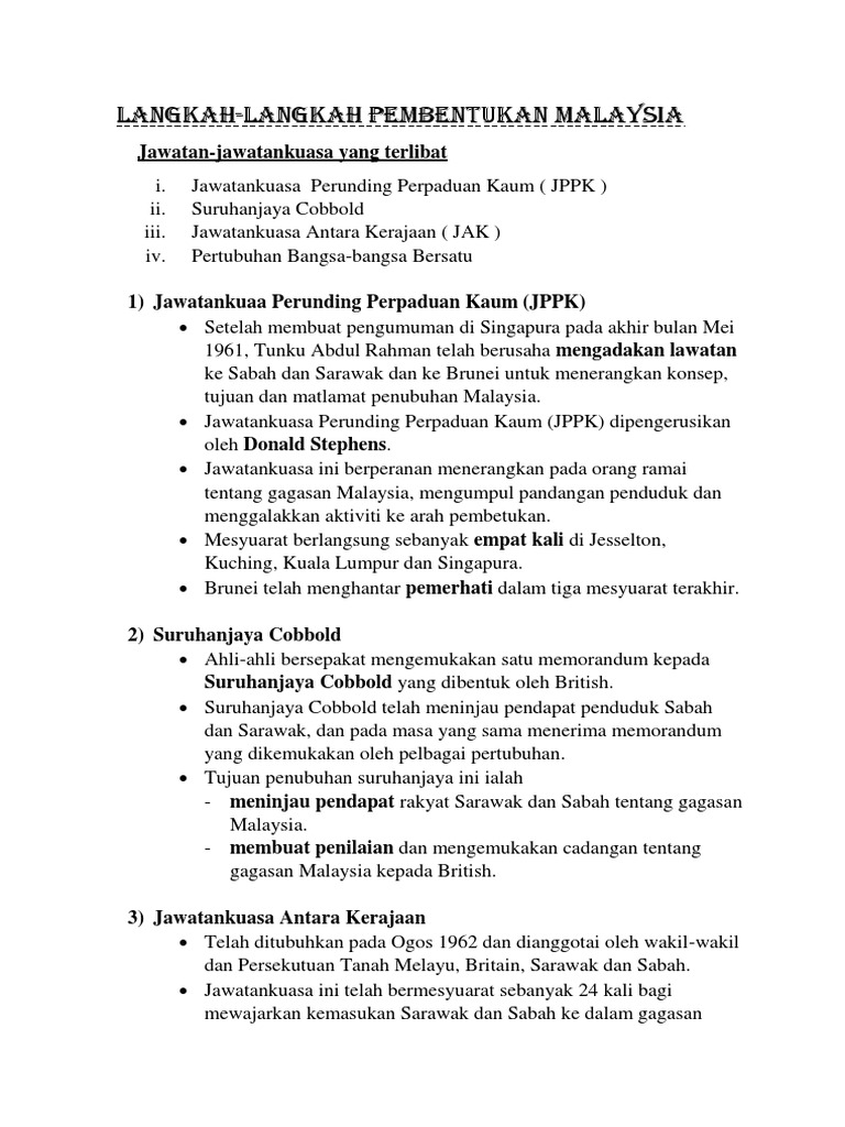 Sejarah Langkah Langkah Pembentukan Malaysia